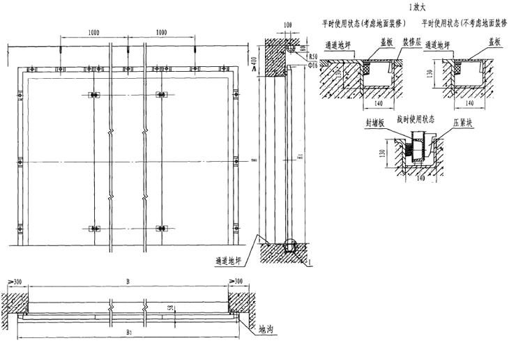 此封堵板可用于封堵平時使用、戰(zhàn)時不用的孔口。其特點是平時可以不安裝封堵板(但要加工好防在附近的指定位置),戰(zhàn)時根據(jù)事先設定的轉換時限將封堵板進行快速安裝,以滿足防護、密閉的要求。根據(jù)其設置位置的不同可分為防護單元通風口或連通口用雙向受力防護密閉封堵板(編號中無“L”)和臨空墻防護密閉封堵板兩大類。
